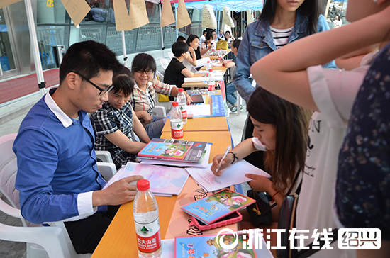 今天下午14:00,活动在绍兴市文化馆举行,今天的活动主要是“2015年绍兴市高校艺术设计专业毕业作品汇展暨绍兴市大学生书画艺术新锐奖颁奖仪式”和“2015绍兴市高校毕业生成果推荐会暨专场招聘会”。活动现场展出了不少高校服装服饰、视觉传达、环境艺术、工业设计等专业设计作品,文化馆广场上,近百家相关企业进行现场招聘与宣传。