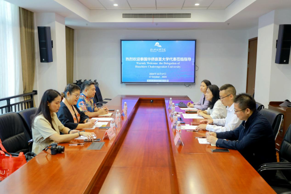 10月17日上午,我校与泰国华侨崇圣大学开展教育合作洽谈。泰国华侨崇圣大学校长Uraipan Janvanichyanont、中国学学院院长 Tanes Imsamran、传媒学院教师莎瓦拉·邓吉古颂功,我校副校长胡云进,鲁迅人文学院、国际交流合作处相关负责人等参加了本次会议。