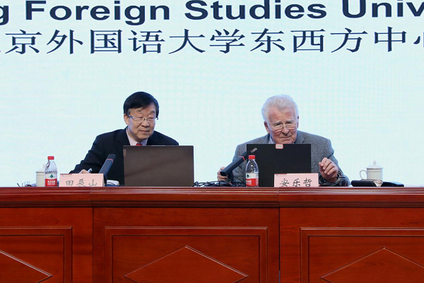 3月4日晚,风则江大讲堂第353讲“儒学的亲情哲学”(The Confucian Philosophy of Family Feeling)专题讲座在风则江大讲堂报告厅举行。世界著名中西比较哲学家、国际知名汉学大师、北京大学人文讲席教授安乐哲先生和国际儒学联合会荣誉顾问田辰山先生作联袂报告,讲座由外国语学院院长胡朋志主持。