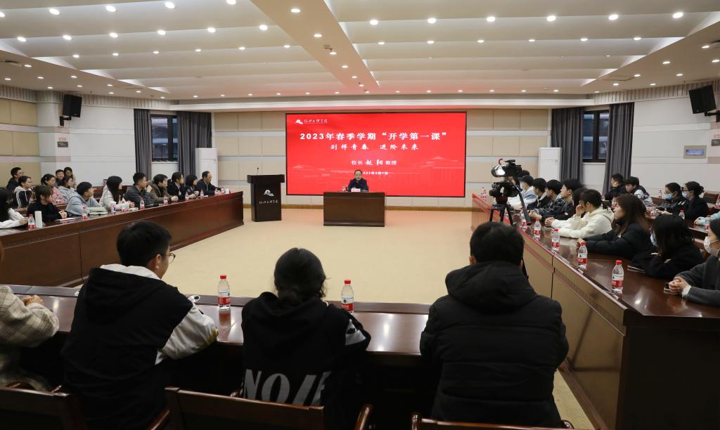 “同学们的如约返校,让寂静冷清的校园重新焕发出生机和活力,有你们真好”,校长赵阳深情饱满的讲授“开学第一课”。他回顾了三年来,以习近平同志为核心的党中央团结带领包括我校师生在内的中华儿女抗击疫情、战胜疫情的伟大实践和成就,分析了中国经济社会发展长期向好的大势,阐释了中国式现代化道路的核心要义,叮嘱同学们牢记习近平总书记的殷殷嘱托,胸怀山河、挺膺担当,希望同学们“坚定理想信念,厚植爱国爱校情怀”“勇毅笃行,惟实创变”“眼里有光芒,心中有诗意”,不断锤炼品德修为、练就过硬本领,以奋斗之姿展现别样青春。
