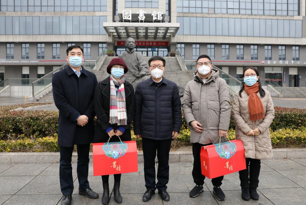 汪俊昌一行先后来到学校总值班室、河西配电房、河西校区南大门、南山校区大门、阳明书院、附属医院、兰亭校区、上虞分院、元培学院,亲切慰问了寒假期间依然坚守岗位的教职工,致以诚挚的问候并代表学校党委和行政送上了新春祝福和慰问品。