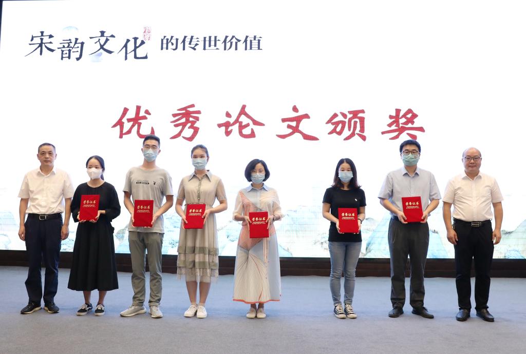 绍兴市社联党组成员、副主席王晶宣读了此次峰会征文活动获奖文件,经专家评审,评出北京大学曹瀛月《宋韵的诗学发扬——论苏轼对司空图的接受》等12篇优秀论文,其中一等奖2篇、二等奖4篇、三等奖6篇。谢利根和马国灿为论文获奖代表颁奖。
