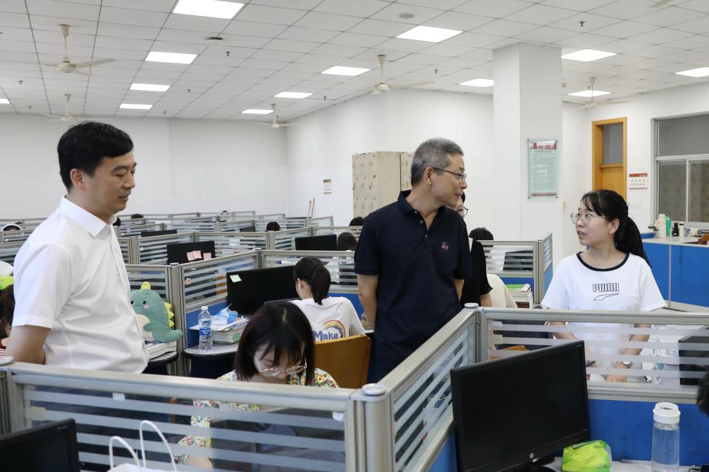8月4日上午,校长王建力走访看望暑期留校开展科研工作的教师和考研学生。党办、校办、学工部、图书馆等部门负责人和部分二级学院负责人陪同走访。