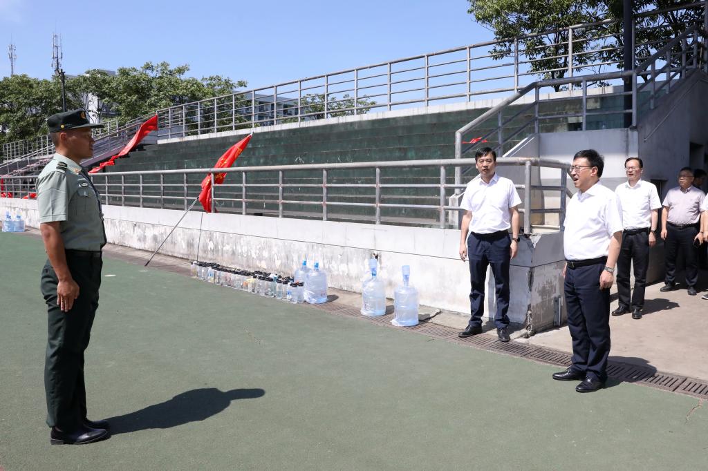 汪俊昌一行详细了解训练情况并在现场观看了训练,听取承训教官关于军训情况的报告。他对同学们在烈日炎炎下坚持训练、不怕苦不怕累的精神给予充分肯定,对承训教官的辛勤付出表示诚挚感谢。他希望同学们通过军训磨练意志品质,提高身体素质,以高质量、严标准完成军训任务,以更饱满的精神面貌投入学习和生活。