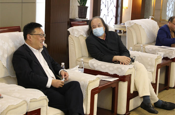 音乐会开始之前,汪俊昌与叶国辉教授进行交流。