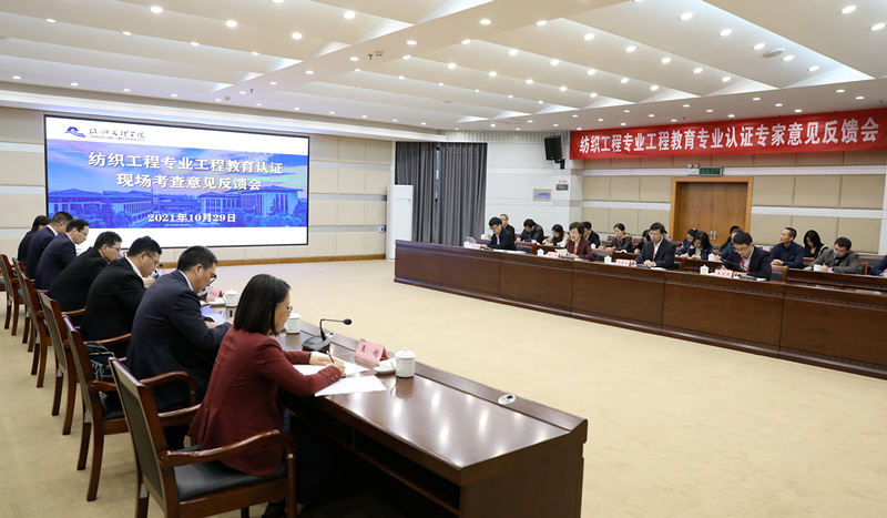 学校相关职能部门负责人、校教学督导工作委员会主任、纺织服装学院全体班子成员、专业负责人及教师代表,各工程专业所在学院负责人和相关工科专业负责人参加会议。