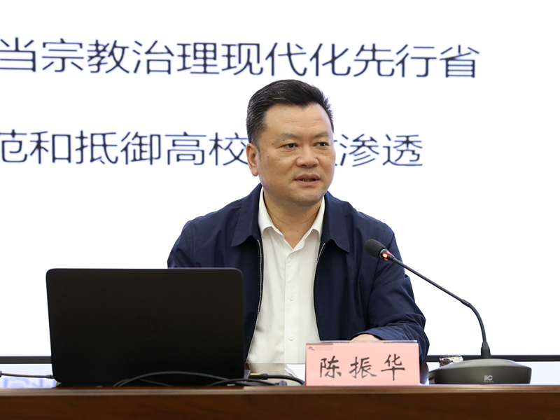 陈振华就如何做好防范和抵御高校宗教渗透作了专题辅导。他从习近平新时代中国特色社会主义思想的宗教工作篇、新形势下宗教工作面临的新挑战、争当宗教治理现代化先行者、防范和抵御高校宗教渗透四个方面进行了深入阐述。他指出,要深刻领会习近平总书记关于宗教工作的重要讲话精神,深入理解总书记“宗教问题始终是我们党治国理政必须处理好的重大问题,宗教工作在党和国家工作全局中具有特殊重要性,关系中国特色社会主义事业发展,关系党同人民群众的血肉联系,关系社会和谐、民族团结,关系国家安全和祖国统一”的重要表述。他着重从大力开展马克思宗教观和国家宗教政策法规宣传教育工作、落实好防范校园宗教渗透的各项措施等角度就做好校园宗教工作进行了全面深入的辅导。