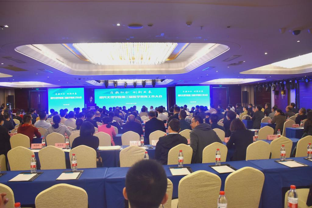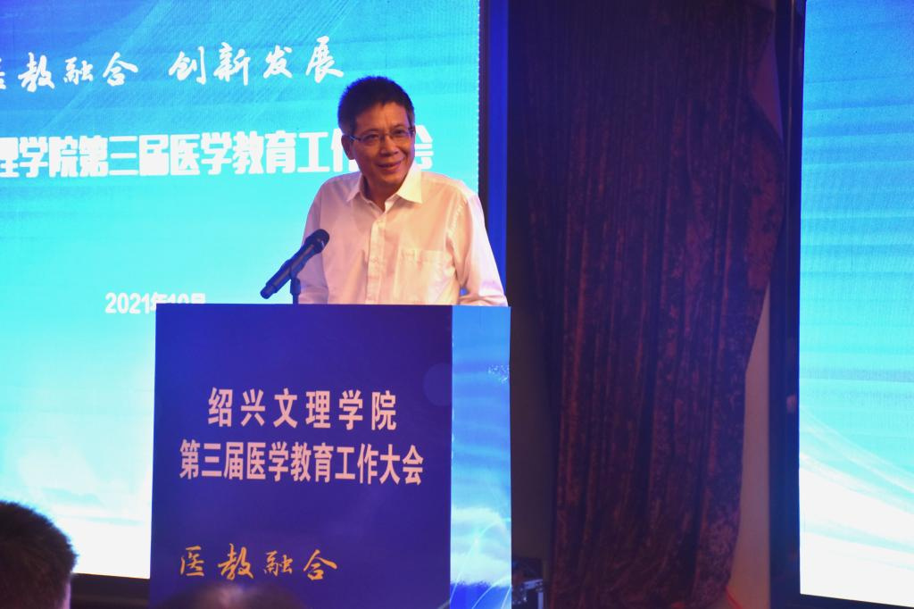 10月17日,学校召开第三届医学教育工作大会。本次会议以“医教融合,创新发展”为主题,旨在进一步深化医教融合,加快我校医学教育的创新发展,培养高质量医学人才。校长王建力、副校长黄坚,校党委委员、医学院院长郭航远,绍兴市卫健委副主任金红柱,校教务处、研究生工作部、研究生处相关负责人,各附属医院、研究生培养基地、教学医院、实习医院、社区卫生服务中心相关领导、相关科室负责人,医学院班子成员和各科室、系部、中心负责人,绍兴市医学会、医学教育分会的委员和学组成员等参加大会。大会由医学院党委书记主持。