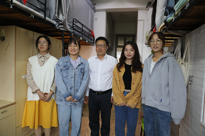 会后,汪俊昌一行走访阳明书院2幢203寝室,与学生交流新学期思想、学习、生活等情况。