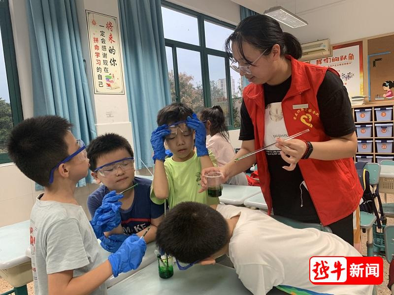 北海小学教育集团镜湖校区负责人说,我校学生志愿者的加盟,为学校课后服务第二阶段的拓展课程创设了更丰富的内容,“‘化’说科学”等新课程所组成的多元课堂成为了孩子们成长的“百花园”。