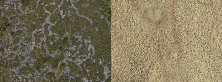 图2我国川藏地区(左图)和火星地表(右图)颗粒物质自组织地貌结构。