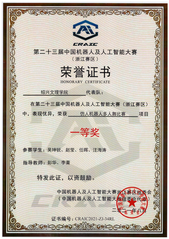 我校学子在第23届中国机器人及人工智能大赛(浙江赛区)中获奖