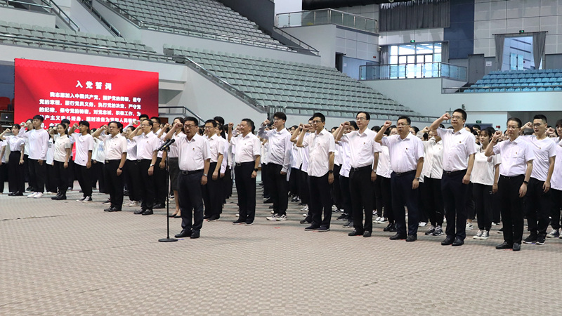 7月1日上午,为庆祝中国共产党成立100周年,激励广大党员坚定理想信念,加强党性修养,教育新党员牢记党的誓言,坚定为党和人民奋斗终身的决心,学校在河西校区体育馆举行2021年新发展党员集体宣誓仪式。校党委书记汪俊昌,校长王建力,校领导班子其他成员,各党群部门负责人,各二级党组织书记、副书记、组织员,新发展党员等参加仪式。仪式由党委副书记沈赤主持。
