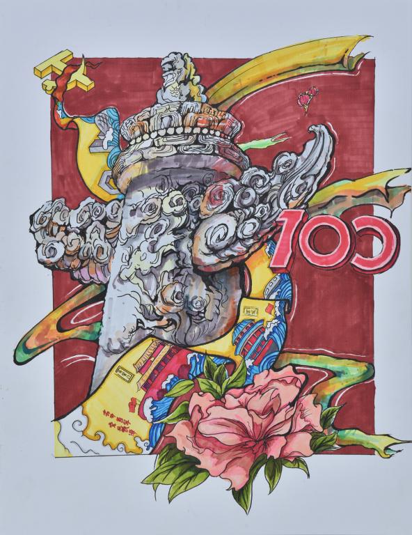 本次展览以“执笔书画 艺心向党”为主题向全校师生征集书画、海报、摄影等作品,历时两个月收集作品两百余幅,经评审选出优秀作品100幅展出,其中教师作品30幅,学生作品70幅。参展作品含中国画、油画、综合材料、书法、摄影、海报、杭绣、铜雕等多种门类作品,形式内容丰富。