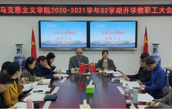开学伊始,马克思主义学院全体教职工以专题理论学习会开启新学期的工作,重点部署“学党史、担使命”思政理论课“开学第一课”。学院依托思政课主渠道,将党史学习教育融入集体备课和课堂教学,做到学史明理、学史增信、学史崇德、学史力行。