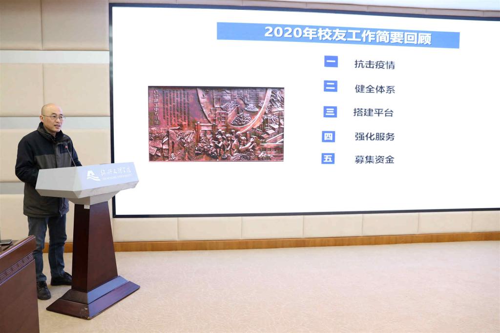 校外联处处长、校友办主任陈立作《完善校院两级管理 搭建学校校友共同发展平台》主题报告。报告从抗击疫情、健全体系、搭建平台、强化服务、募集资金五个方面对2020年学校校友及基金工作进行了总结,同时提出2021年校友办将继续紧密围绕学校的中心工作,重点做好“四大工程”,即:组织好“两横两纵”,完善校友服务网络工程;练好“内功”,推进校友服务基础工程;创新载体,建好校友服务平台工程;深挖潜力,做好教育基金提升工程。外联处副处长、校友办副主任夏婷就拟引进的智慧校友平台建设进行了说明。土木工程学院、医学院、元培学院等校友工作负责人围绕本学院校友工作实践进行了主题发言。与会人员就如何筹建校友组织、开展校友活动、创新校友工作模式,加强校友与母校之间的联系等进行了交流。