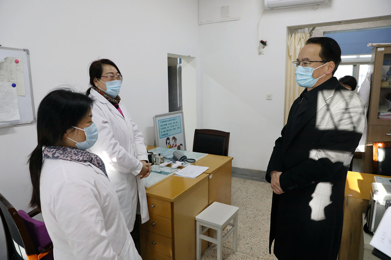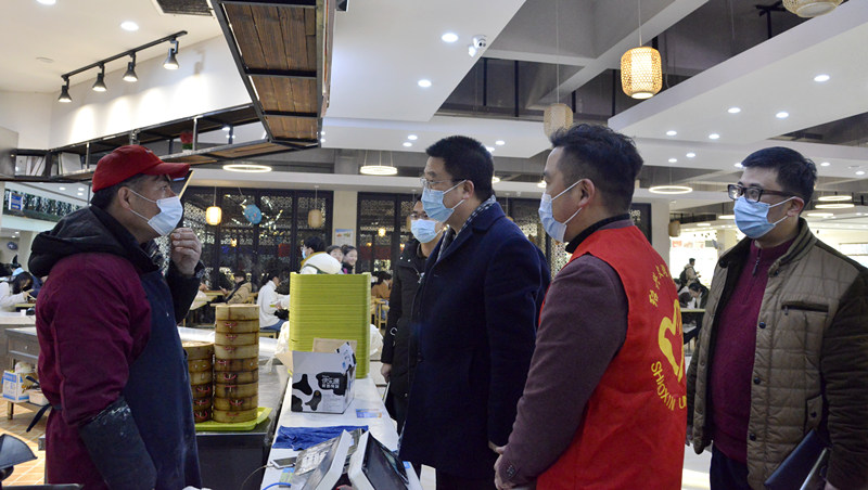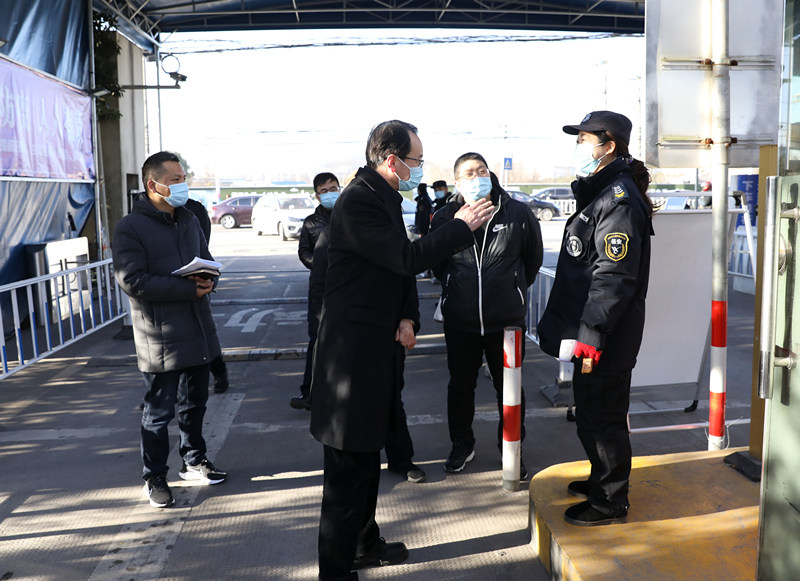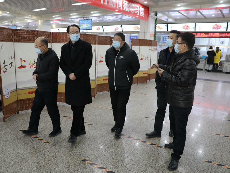 张宏一行实地走访了河西餐厅、超市、校门、寒假留校学生临时观察点、医务室、图书馆和河东校门、基建工程工地等地。
