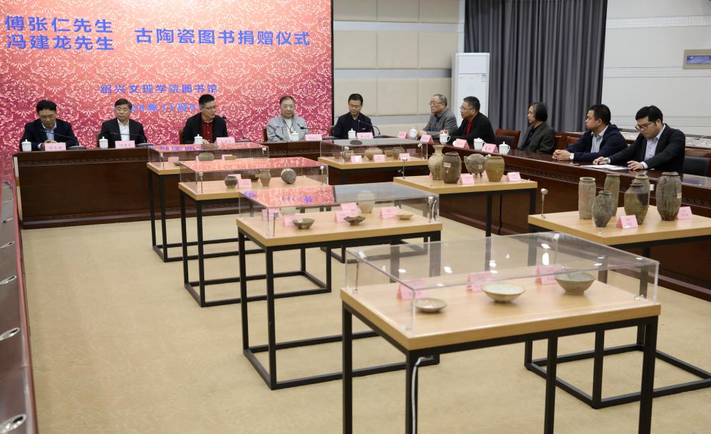 据悉,傅张仁先生和冯建龙先生此次共捐赠36件古瓷和27册图书,并通过展览的方式供师生参观学习。