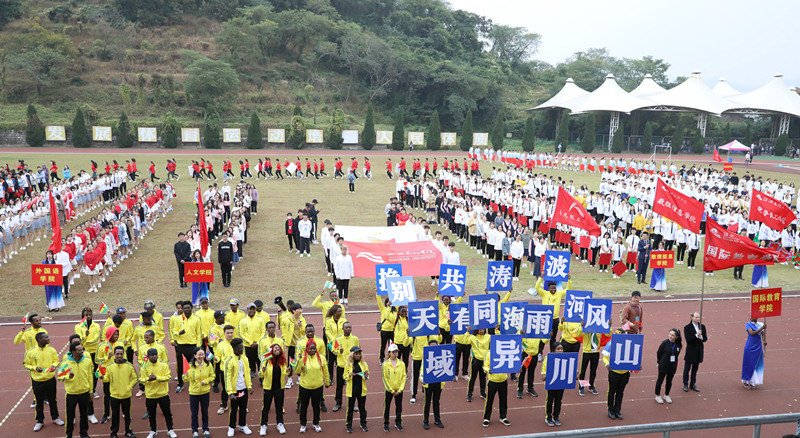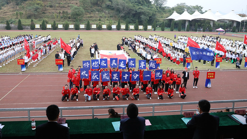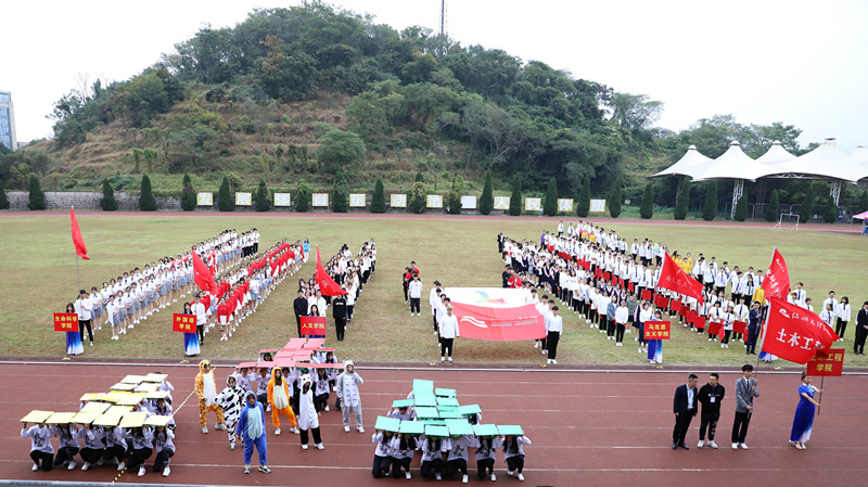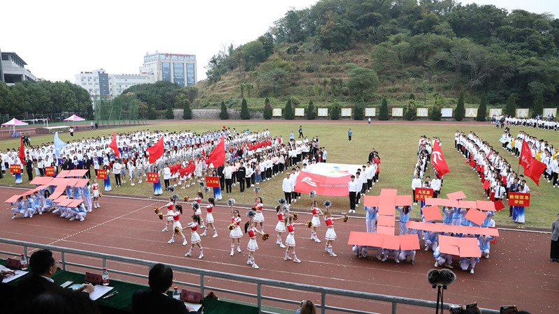 国旗、校旗、会徽、裁判员、教练员、运动员代表,16个二级学院代表队,研究生代表队和国际教育学院代表队依次入场。各代表队充满特点、精彩纷呈的方阵表演和精心的编排让观众们眼前一亮。