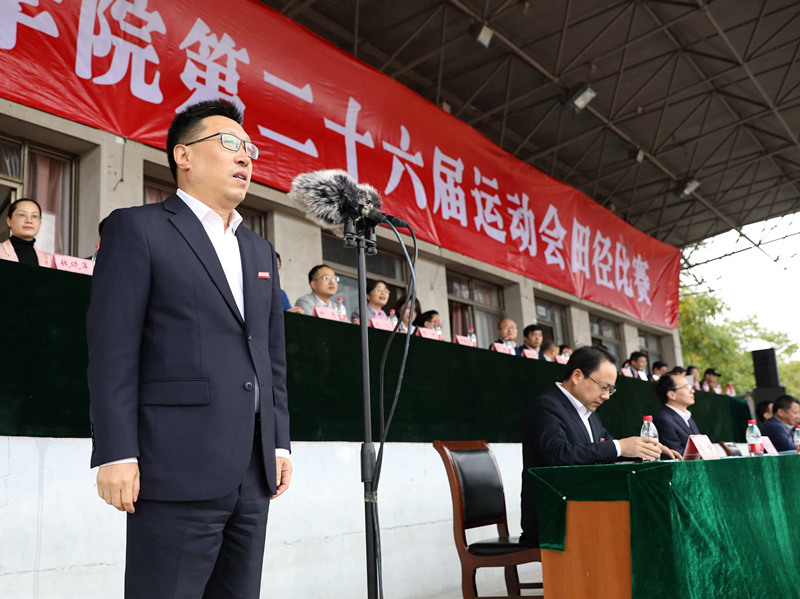 运动员代表数理信息学院仇丹同学、裁判员代表教师教育学院翟玉志老师分别代表全体运动员和全体裁判员庄严宣誓。