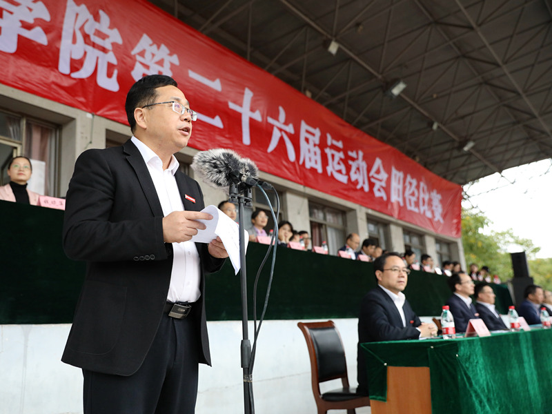 10月29日上午,学校第二十六届田径运动会在南山田径场隆重开幕。校党委书记汪俊昌,党委副书记沈赤、张宏,副校长寿永明、柳国庆、黄坚,校党委委员、宣传部部长梁瑜,第26届田径运动会组委会成员和各二级学院相关负责人在主席台就坐。汪俊昌宣布运动会正式开幕。