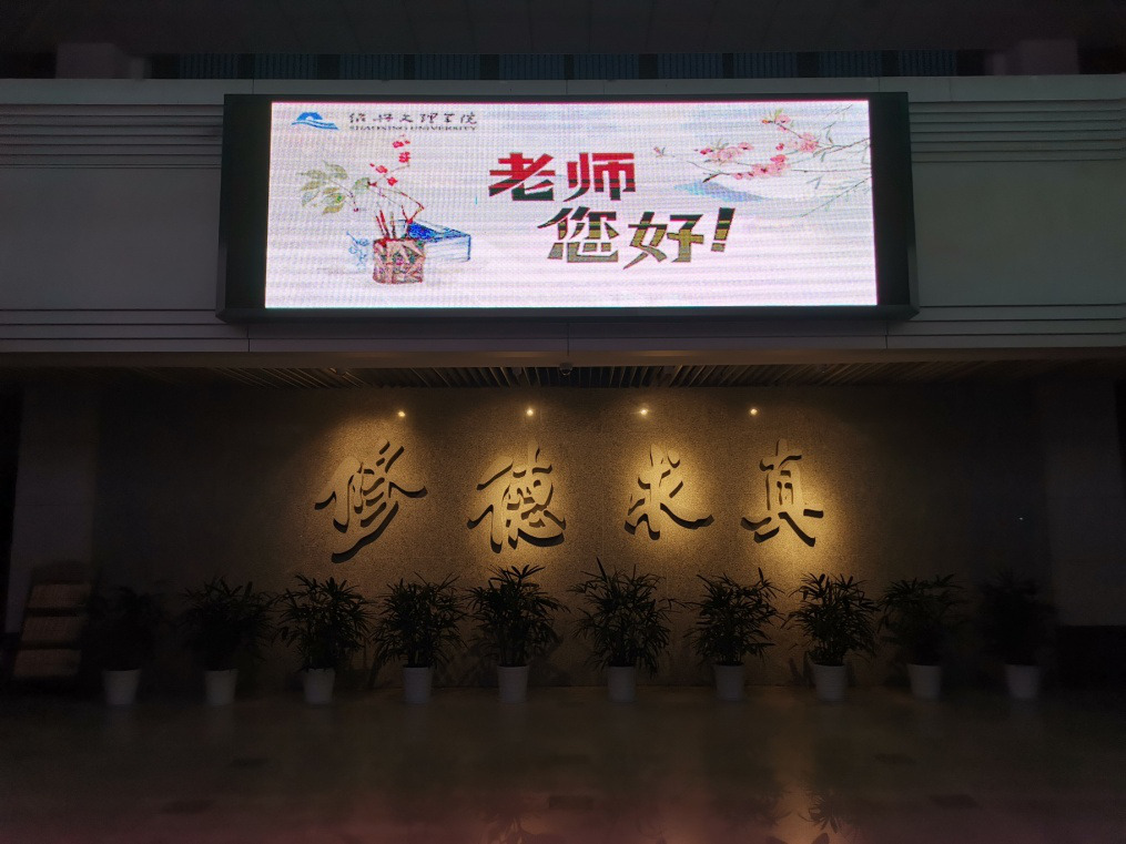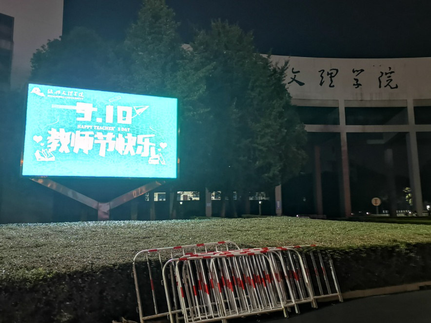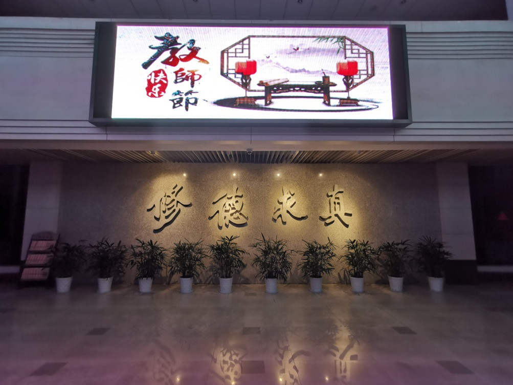 为庆祝第36个教师节,全省开展城市地标及学校“为教师亮灯”公益活动。我校积极参与,结合学校实际,精心设计庆祝教师节图文标语,在行政楼、河西餐厅、南山校门、南山餐厅等四处电子大屏滚动播放。