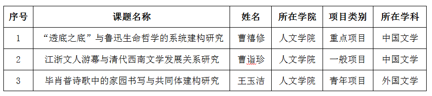 9月9日,全国哲学社会科学工作办公室对2020年国家社科基金年度项目和青年项目立项名单进行了公示,我校有三个项目名列其中,其中曹禧修教授获得重点项目,曹诣珍老师获得一般项目,王玉洁老师获得青年项目。去年以来,学校连续实现国家社科基金重大项目、国家社科基金重点项目、省哲社基金重大项目等一系列重大课题的突破。