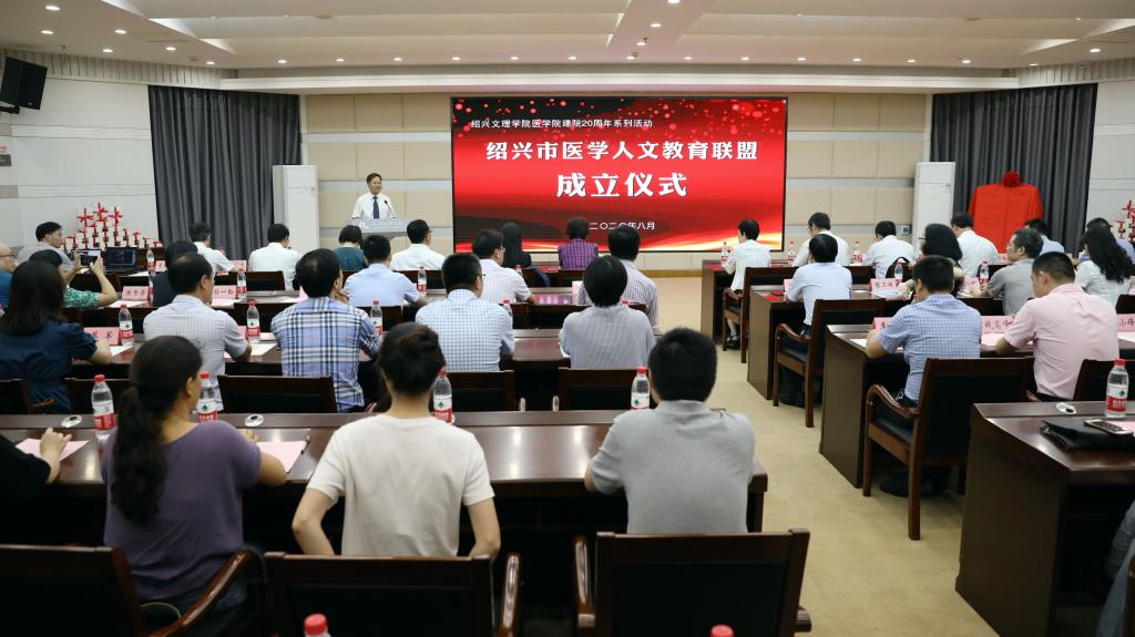 8月29日,绍兴市医学人文教育联盟成立仪式暨首届医学人文教育论坛在我校举行。汕头大学教授杨棉华、中国人民解放军海军军医大学教授姜安丽、哈尔滨医科大学教授杨立斌、汕头大学医学院博士杨苗,副校长柳国庆、黄坚,浙江省教育厅高教处、绍兴市卫生健康委员会中医科教处、绍兴市教育局高教处和校党委宣传部、教务处、校附属第一医院、医学院等相关负责人,以及国内相关专家学者共70余人参加仪式。