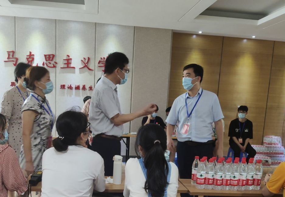7月12日,我校2020年“三位一体”招生综合素质测试在南山校区举行。校党委书记汪俊昌,校长王建力,校党委副书记郝敬习,副校长柳国庆等校领导亲临考试现场部署考试工作,市卫健委驻校健康指导员到现场指导常态化防控工作。