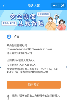 6.将以下预约入馆信息出示给门口保安方可入馆。