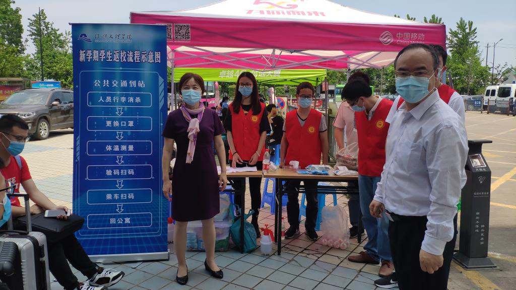 校领导走访学生返校接站点