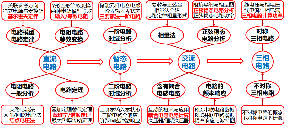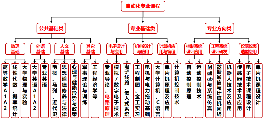 1.课程特点:电路理论是当代电气工程与电子科学技术重要理论基础之一,在工程技术领域和实际生活中都有广阔应用。从简单照明电路,到复杂电力系统;从收音机、电视机,到卫星通信网、计算机互联网,都与电路理论有密切联系。《电路原理》课程是学习电路理论的第一门工科电类专业基础课,在整个专业人才培养方案和课程体系中起着承前启后的重要作用(见下图1),因此是自动化专业的“看家课”,也是“入门课”。