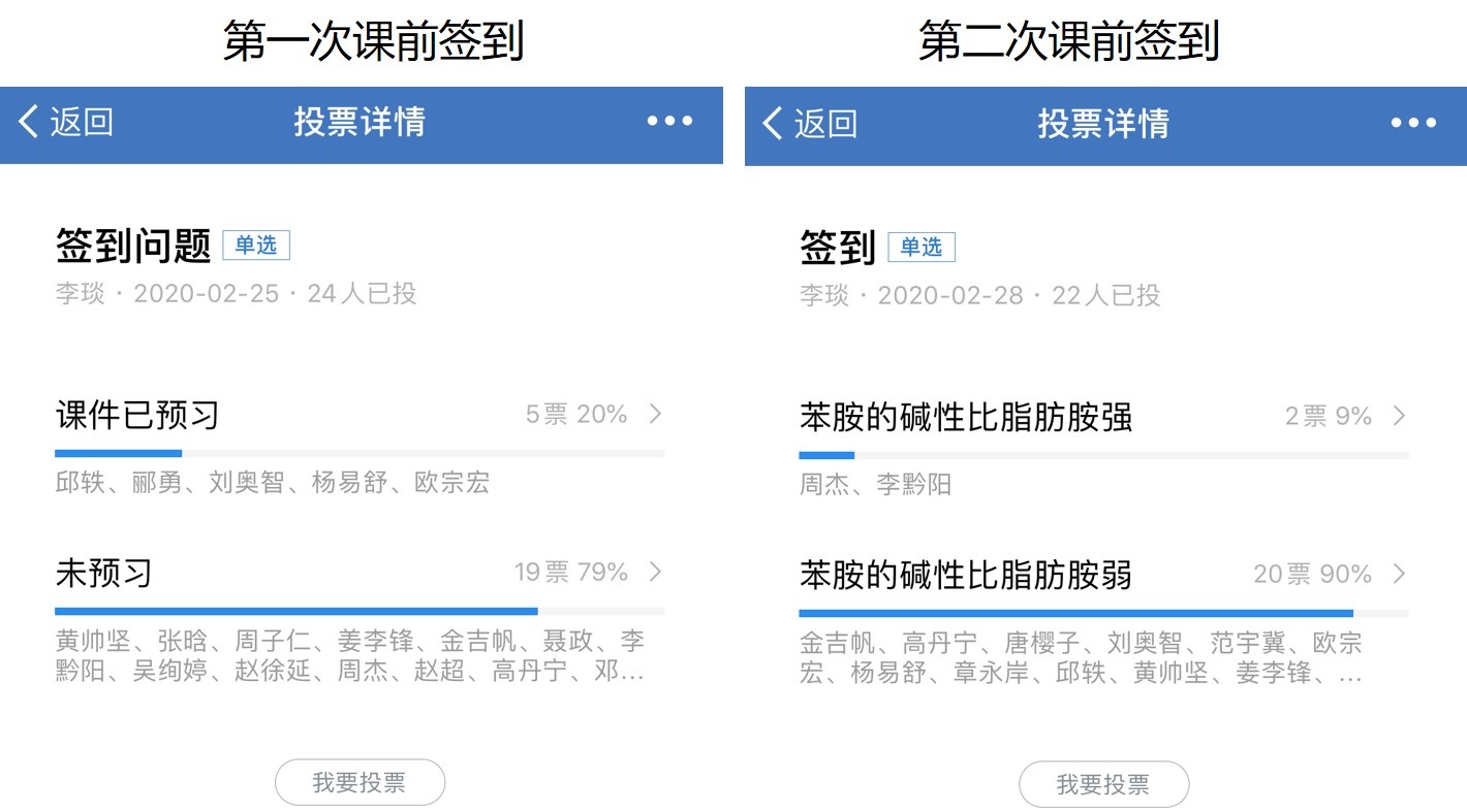 图5. 两次课前签到情况的对比( 企业微信投票)