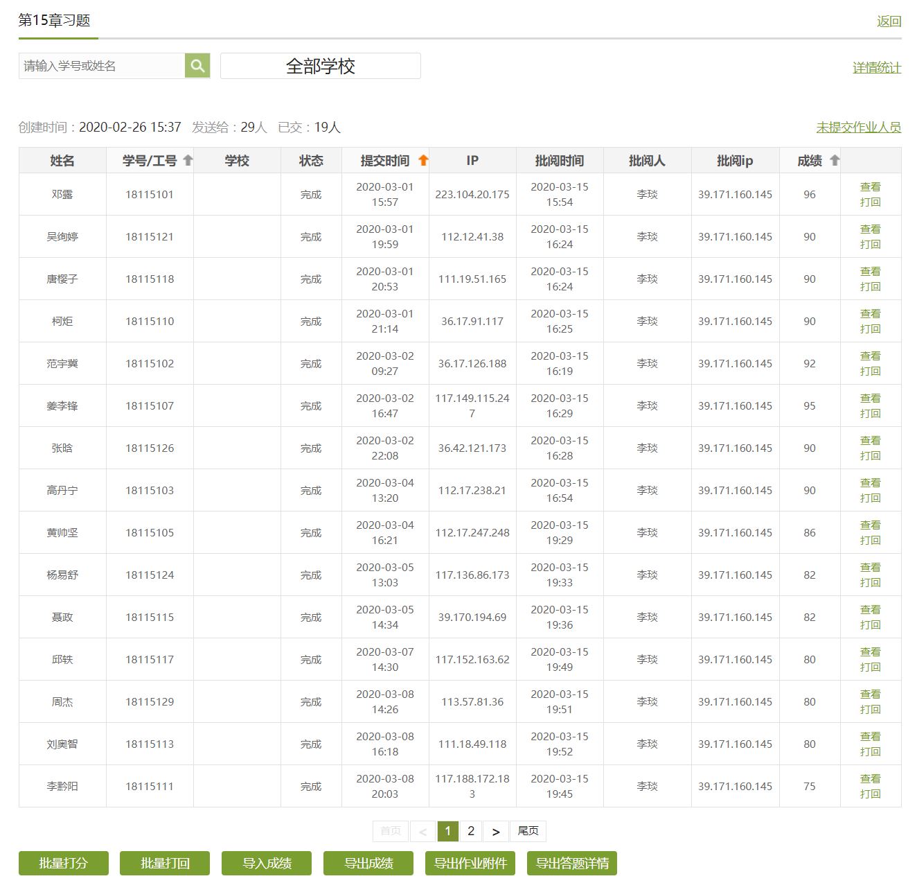 图10. 超新星学习通平台学情跟踪——作业批阅示例