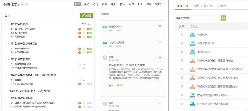 图2. 超新星学习通平台“有机化学2”的课程界面及资料栏