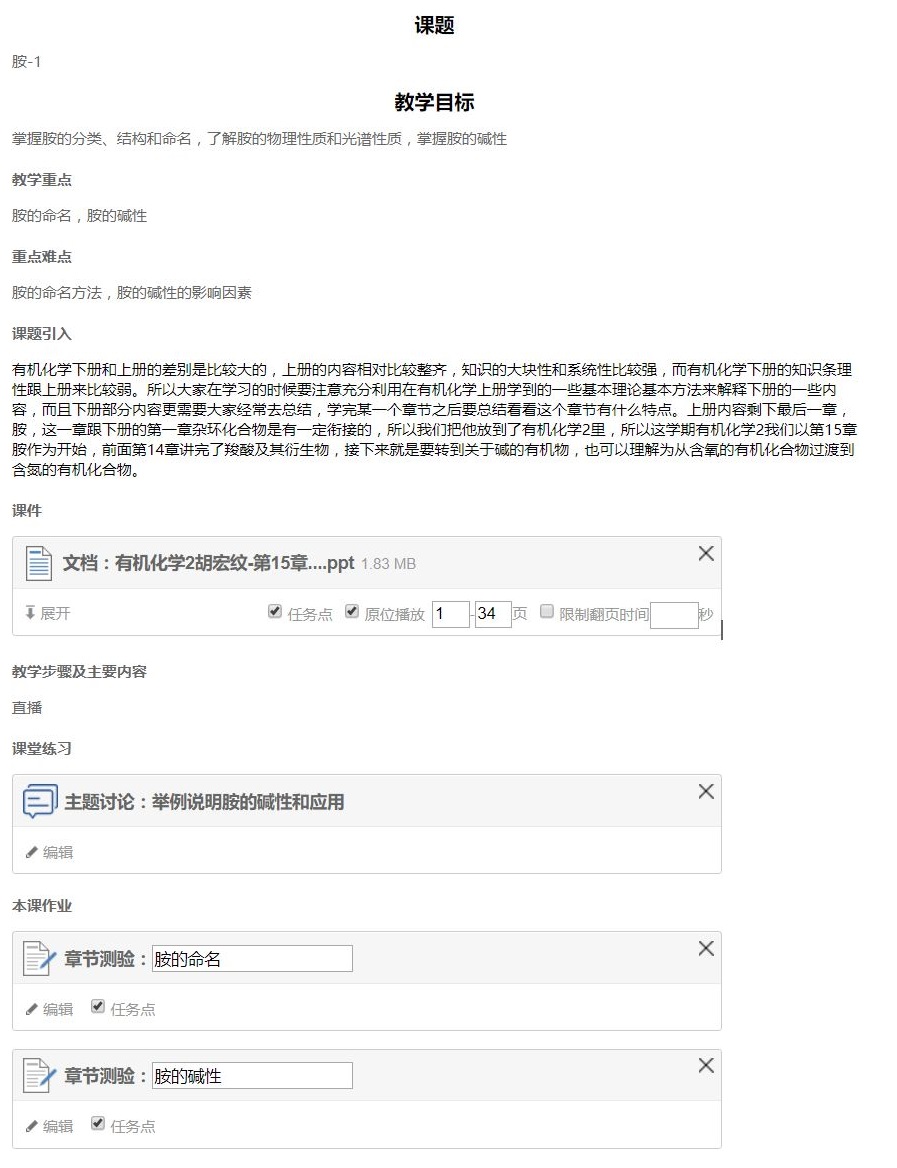 图4. 超新星学习通平台“有机化学2”的单次课程详情