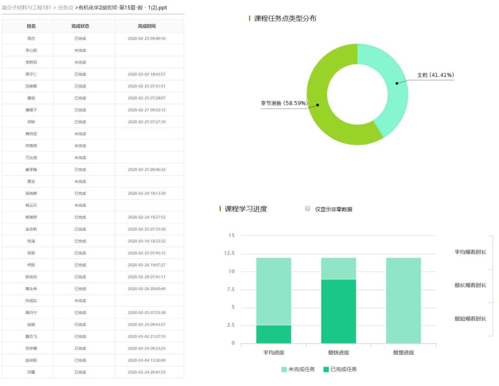 图8. 超新星学习通平台学情跟踪——作业完成情况示例