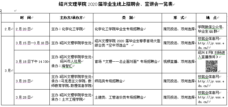 为切实保障毕业生身体健康和就业权益,最大限度减轻疫情对毕业生就业工作的影响,3月15日—3月18日,我校开展了2020届毕业生春季首场“空中双选会”、企业“面对面”直播活动,为毕业生提供每天24小时、连续4天的网上校园招聘服务。