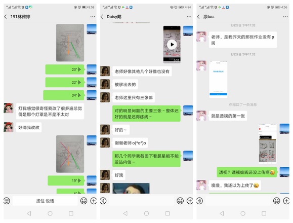 5、“管”指的是“学生管理”。线上教学最难的就是学生的管理,我们无法把控学生是否在互联网的另一端进行着课程的学习。三位老师通过签名签到、过程把控和随机连线三种方式最大程度掌控了学生的学习情况。过程把控一是指利用钉钉平台发起全班视频会议,学生的学习状态一目了然;二是可以发布课堂内的定时作业以检测学生是否在做作业。随机连线是指通过视频连线把同学请入课堂的方式检验学生是否真正在课堂学习。