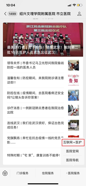 只要通过我校附属医院微信公众号或健康绍兴APP就可以进入网络诊室,广大市民足不出户就能享受各科的医疗咨询和慢病续方开药服务,在疫情防控的特殊时期,附属医院提供的这份便利让人感到暖心而安全。
