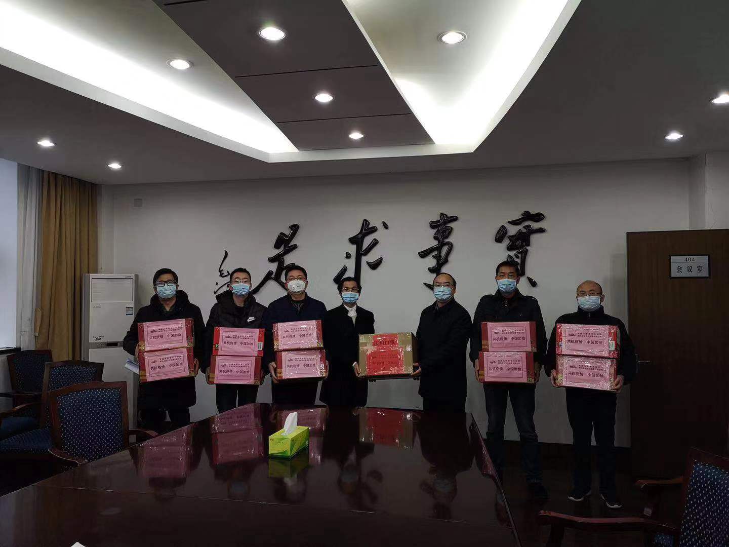 2月11日,学校行政楼四楼会议室爱心洋溢,温情涌动。绍兴鉴湖水街壹号文创园、绍兴水街文化创意有限公司总经理陈奇淼先生捐赠医用口罩1000副,方便面120桶,用于支持学校一线新冠肺炎疫情防控工作。校防控领导小组常务副组长兼办公室主任黄坚副校长,党委、校长办公室、后管处负责人参加捐赠仪式。