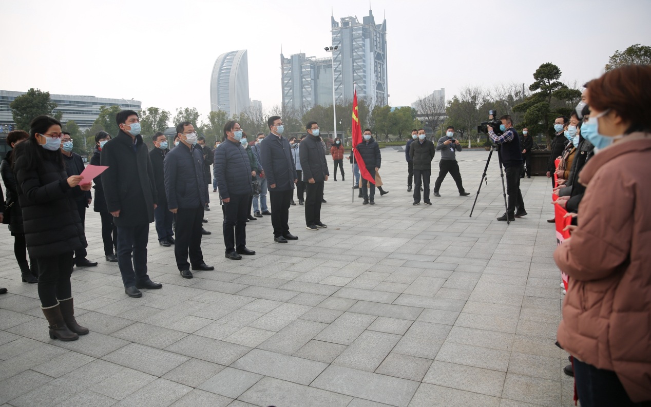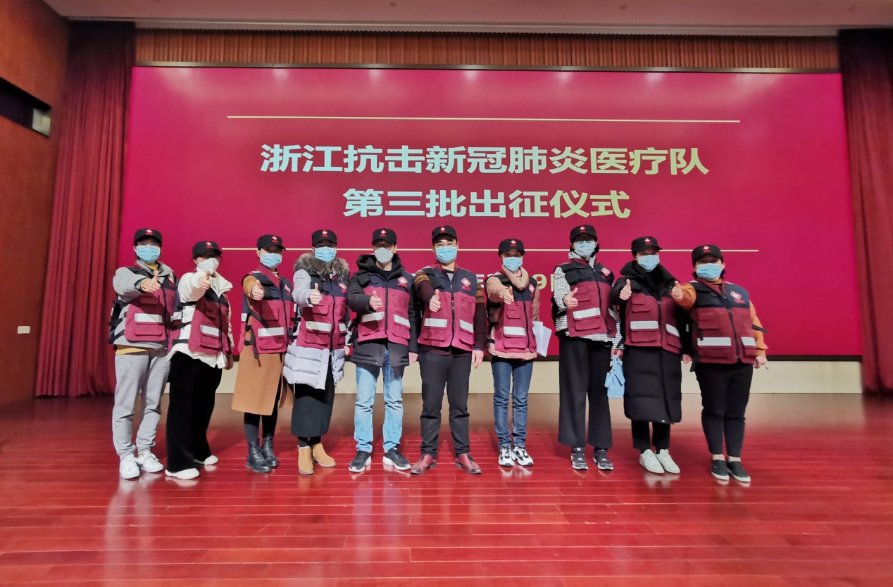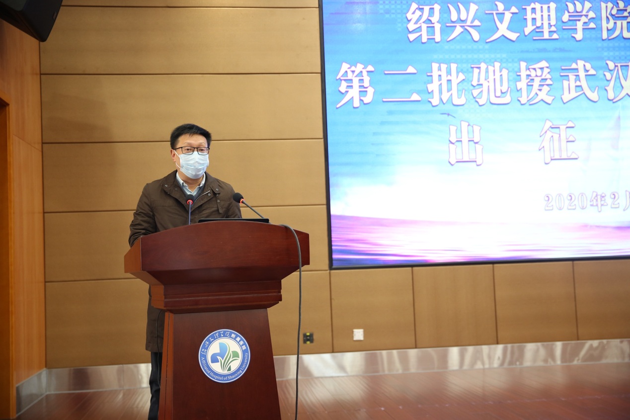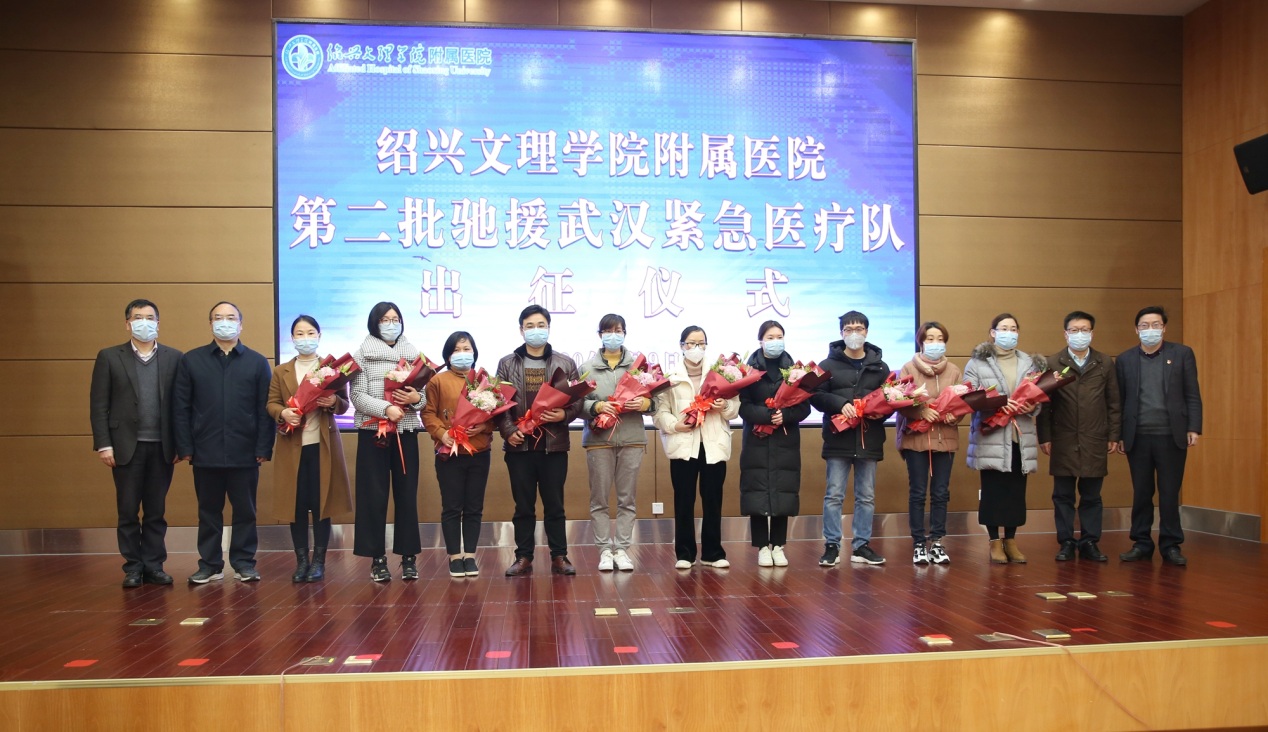 2月9日中午12点,我校附属医院10位医护人员和来自市直医疗单位的共43位同志组成的绍兴市第三批驰援武汉医疗队在市行政中心广场集结,举行出征仪式。市委书记马卫光参加出征仪式并讲话,市委副书记、市长盛阅春为医疗队授旗,市领导徐晓光、丁如兴、陆维、顾涛参加。马卫光代表市委市政府和全市500多万人民,向平时默默付出、战时挺身而出的白衣天使们、最美逆行者们致以崇高的敬意,表示衷心的感谢。
