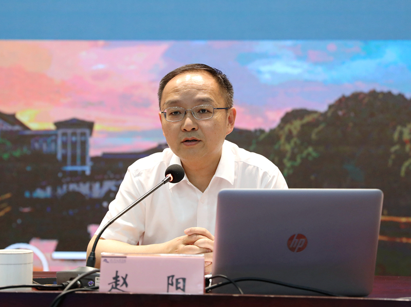 赵阳作题为《瞄准申博目标,打造学科高峰 全面提升我校学位点建设和研究生教育水平》的主题报告。赵阳从研究生规模扩大、培养质量持续提升,研究生课程和教学保障体系进一步优化,研究生导师队伍建设不断加强,研究生思想政治教育和管理体系不断完善,获批博士点授予立项建设单位开启新征程等五大方面全面肯定并回顾一年来学位点建设和研究生教育工作。