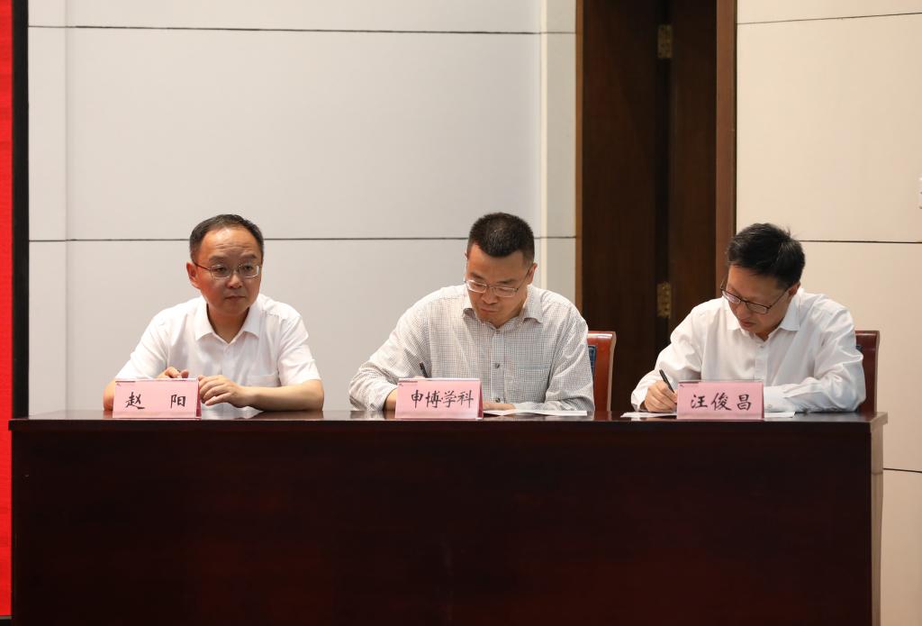 汪俊昌、赵阳与中国语言文学、化学、土木工程三个申博学科负责人签订责任书。