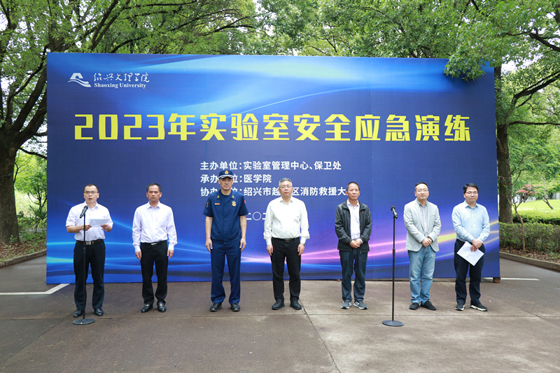 为进一步贯彻落实全国高等学校实验室安全工作会议精神,提高实验室突发事件的应急处置能力,5月24日中午,学校在南山校区3号楼开展实验室安全应急演练,副校长柳国庆、越城区消防大队副大队长翁史松场观摩指导,二级学院分管实验室领导、相关职能部门负责人、实验室管理人员、师生代表共160余人参加演练和观摩。