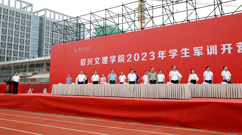 9月4日上午,我校在南山田径场举行2023年学生军训开营仪式。绍兴军分区大校司令员蒋明球,校党委书记汪俊昌,校长赵阳,越城区人武部上校部长罗劲松,校党委副书记张宏,副校长柳国庆,二级学院副书记,全体教官和连队指导员、参训学生参加开营式。
