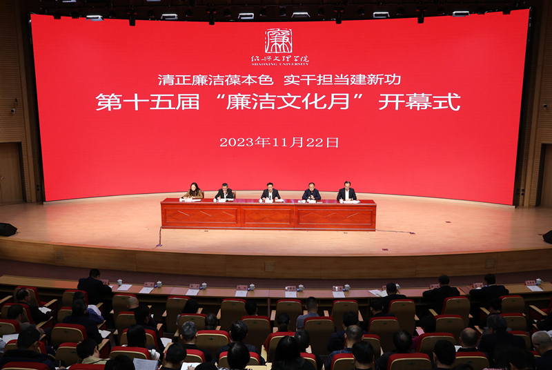 11月22日下午,第十五届“廉洁文化月”开幕式在风则江大讲堂报告厅举行。校党委书记汪俊昌讲话,校长赵阳主持会议。校党政领导班子成员,校纪委委员,二级纪检组织负责人,全体中层干部、科级干部参加会议。