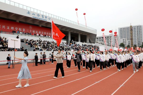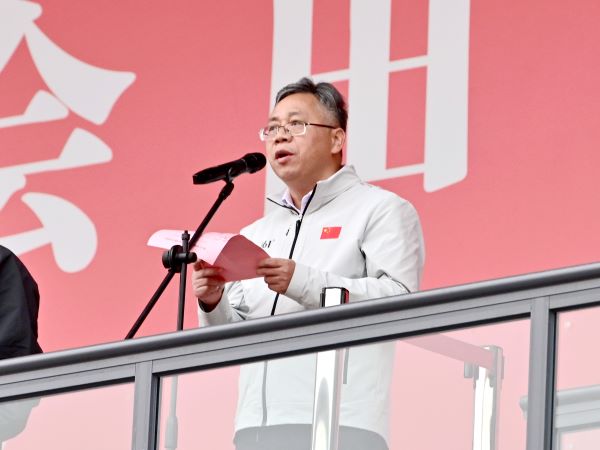10月25日上午,校第三十届田径运动会在南山田径场开幕。校长赵阳,校党委副书记张宏,副校长柳国庆、陈均土、赵浪平、胡云进,校党委委员梁瑜、黄曼,以及校运动会组委会全体成员在主席台就坐。开幕式由柳国庆主持。