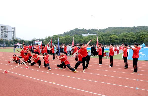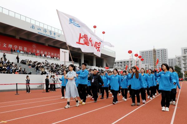 国旗、校旗、运动会会旗方阵,各学院代表方阵,体育教育专业方阵,优秀社团方阵,运动队方阵等依次入场,各方阵运动员们身着统一服装、迈着坚定昂扬的步伐,彰显出自信与活力。本届运动会有24支运动队、780余名运动健儿参加角逐,将产生男、女共计53个运动项目的金牌。