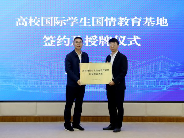 绍兴市文旅集团、黄酒小镇管委会分别与高校国际学生德育教育联盟签约,成为高校国际学生国情教育基地。学校党委副书记张宏和喀什大学副校长罗浩波代表联盟单位为绍兴市文旅集团、黄酒小镇管委会授牌。
